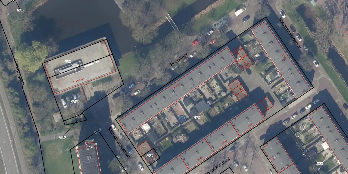 Het perceel waarop Pootstraat 163 staat heeft een oppervlakte van 5053 m². Dit is een zeer groot perceel. De perceeloppervlakte wordt geregistreerd door het Kadaster. Gedetailleerde informatie over de maten van dit perceel kunt u vinden in het rapport Kadastrale kaart met maatvoering van Pootstraat 163.