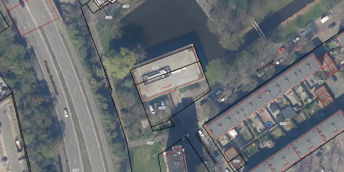 Het perceel waarop Pootstraat 174-A staat heeft een oppervlakte van 920 m². Dit is een groot perceel. De perceeloppervlakte wordt geregistreerd door het Kadaster. Gedetailleerde informatie over de maten van dit perceel kunt u vinden in het rapport Kadastrale kaart met maatvoering van Pootstraat 174-A.
