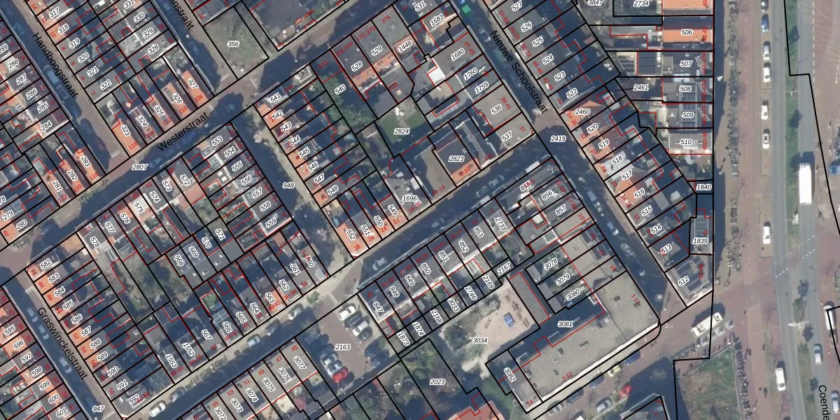 Het perceel waarop het adres ligt is DEL00-O-1696. De afkorting 'DEL00' staat voor kadastrale gemeente Delft. Het perceel is 147 m² groot. Dat is kleiner dan de gemiddelde perceeloppervlakte in Delft, dat op 924,79 m² ligt. De grootste perceeloppervlakte in de kadastrale gemeente is 64,1 ha. De kleinste oppervlakte bedraagt 0 m². Op het perceel zijn 3 adressen aanwezig. In de Basisregistratie Kadaster (BRK) werden de grenzen van het perceel geregistreerd op 19-03-2001.