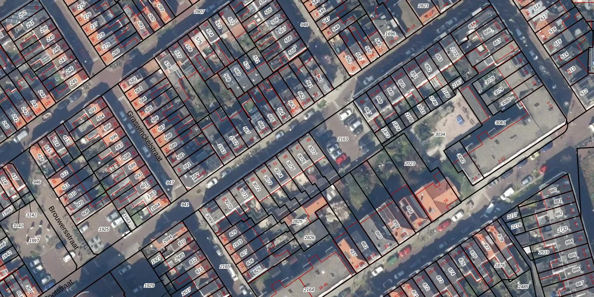Gebruik de zoekbalk of klik op een perceel voor informatie over de adressen binnen dit perceel.