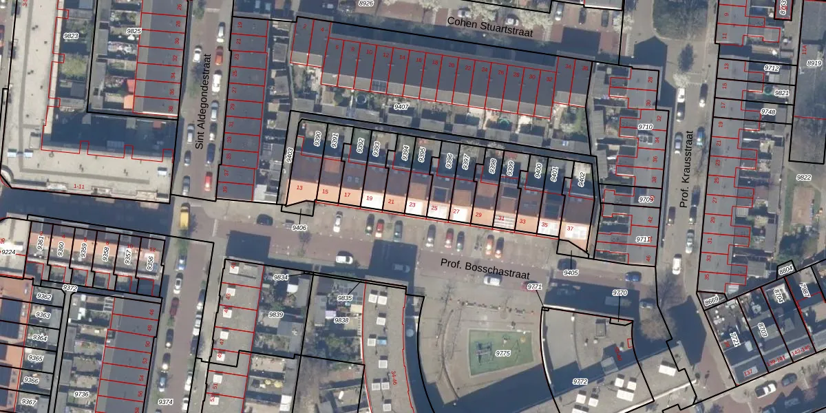Prof. Bosschastraat 23 is gelegen op kadastraal perceel DEL00A9395. Deze kadastrale aanduiding is uniek en wordt gebruikt door het Kadaster om eigendomsrechten en andere zakelijke rechten vast te leggen. Het perceel maakt onderdeel uit van de kadastrale gemeente Delft.