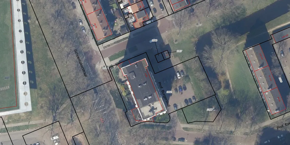 Prof. Burgershof 21 is gelegen op kadastraal perceel DEL00K2692. Deze kadastrale aanduiding is uniek en wordt gebruikt door het Kadaster om eigendomsrechten en andere zakelijke rechten vast te leggen. Het perceel maakt onderdeel uit van de kadastrale gemeente Delft.