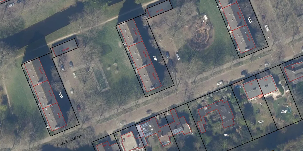 Het perceel waarop Prof. Evertslaan 151 staat heeft een oppervlakte van 1168 m². Dit is een zeer groot perceel. De perceeloppervlakte wordt geregistreerd door het Kadaster. Gedetailleerde informatie over de maten van dit perceel kunt u vinden in het rapport Kadastrale kaart met maatvoering van Prof. Evertslaan 151.