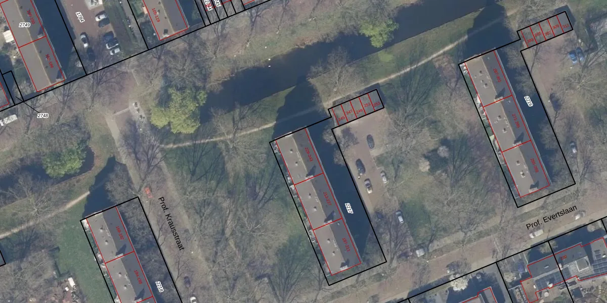 Prof. Evertslaan 243 is gelegen op kadastraal perceel DEL00K2217. Deze kadastrale aanduiding is uniek en wordt gebruikt door het Kadaster om eigendomsrechten en andere zakelijke rechten vast te leggen. Het perceel maakt onderdeel uit van de kadastrale gemeente Delft.