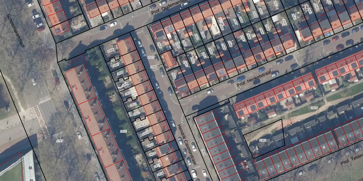 Prof. Henketstraat 1 is gelegen op kadastraal perceel DEL00K2554. Deze kadastrale aanduiding is uniek en wordt gebruikt door het Kadaster om eigendomsrechten en andere zakelijke rechten vast te leggen. Het perceel maakt onderdeel uit van de kadastrale gemeente Delft.