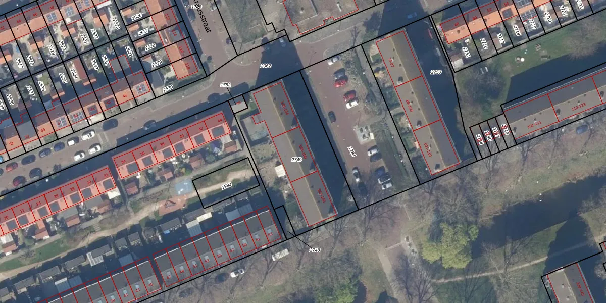 Het adres is gelegen op perceel 2749 in de sectie K en de kadastrale gemeente Delft. De kadastrale aanduiding is aldus DEL00-K-2749. De gemiddelde perceeloppervlakte in de kadastrale gemeente Delft is 924,62 m². Dit perceel is met zijn 1220 m² dus groter dan gemiddeld. De grootste perceeloppervlakte in de kadastrale gemeente is 64,1 ha. De kleinste oppervlakte bedraagt 0 m². Op het perceel zijn 24 adressen aanwezig. In de Basisregistratie Kadaster (BRK) werden de grenzen van het perceel geregistreerd op 18-09-2007.
