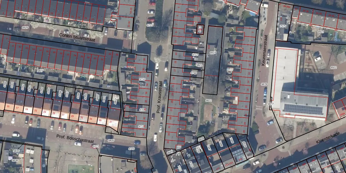 Prof. Krausstraat 21 is gelegen op kadastraal perceel DEL00A9822. Deze kadastrale aanduiding is uniek en wordt gebruikt door het Kadaster om eigendomsrechten en andere zakelijke rechten vast te leggen. Het perceel maakt onderdeel uit van de kadastrale gemeente Delft.