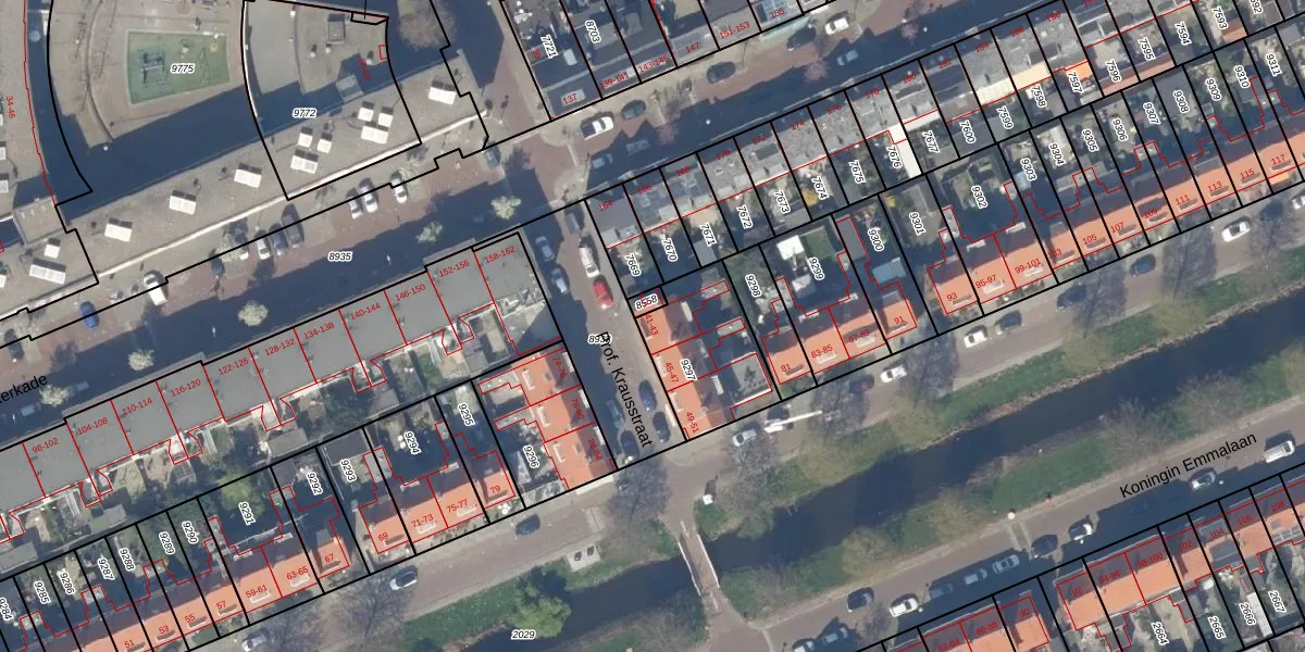 Prof. Krausstraat 41 is gelegen op kadastraal perceel DEL00A9297. Deze kadastrale aanduiding is uniek en wordt gebruikt door het Kadaster om eigendomsrechten en andere zakelijke rechten vast te leggen. Het perceel maakt onderdeel uit van de kadastrale gemeente Delft.