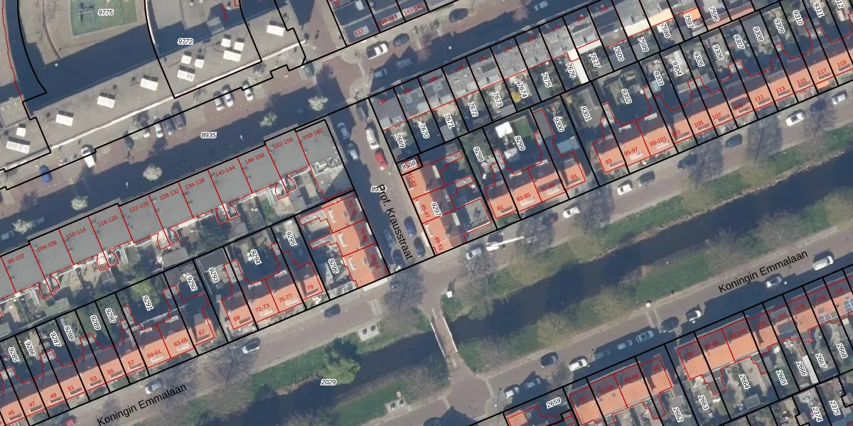 Prof. Krausstraat 45 is gelegen op kadastraal perceel DEL00A9297. Deze kadastrale aanduiding is uniek en wordt gebruikt door het Kadaster om eigendomsrechten en andere zakelijke rechten vast te leggen. Het perceel maakt onderdeel uit van de kadastrale gemeente Delft.