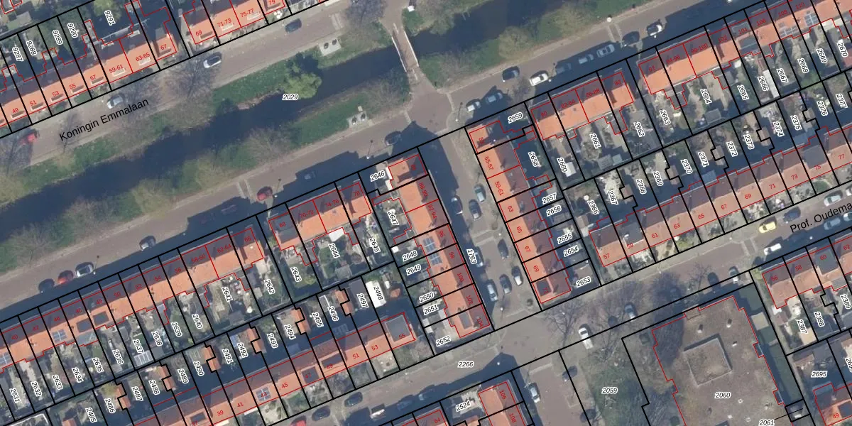 Het adres is gelegen op perceel 2647 in de sectie K en de kadastrale gemeente Delft. De kadastrale aanduiding is aldus DEL00-K-2647. Het perceel is kleiner dan gemiddeld in Delft. Het perceel is 188 m² groot, terwijl het gemiddelde ligt op 923,41 m². De grootste perceeloppervlakte in de kadastrale gemeente is 64,1 ha. De kleinste oppervlakte bedraagt 0 m². Er zijn 4 adressen aanwezig op het perceel. De laatste wijziging in het de Basisregistratie Kadaster (BRK) was op 05-01-2007.