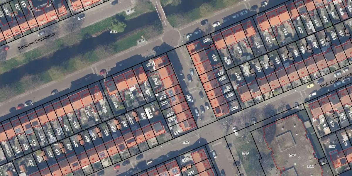 Het adres is gelegen op perceel 2648 in de sectie K en de kadastrale gemeente Delft. De kadastrale aanduiding is aldus DEL00-K-2648. Het perceel is kleiner dan gemiddeld in Delft. Het perceel is 79 m² groot, terwijl het gemiddelde ligt op 924,72 m². De grootste perceeloppervlakte in de kadastrale gemeente is 64,1 ha. De kleinste oppervlakte bedraagt 0 m². Er zijn geen andere adressen aanwezig op het perceel. De huidige grenzen van het perceel zijn digitaal in de Basisregistratie Kadaster (BRK) geregistreerd op 05-01-2007.