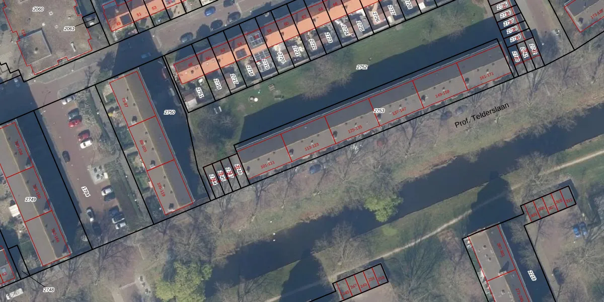 Prof. Telderslaan 119 is gelegen op kadastraal perceel DEL00K2753. Deze kadastrale aanduiding is uniek en wordt gebruikt door het Kadaster om eigendomsrechten en andere zakelijke rechten vast te leggen. Het perceel maakt onderdeel uit van de kadastrale gemeente Delft.
