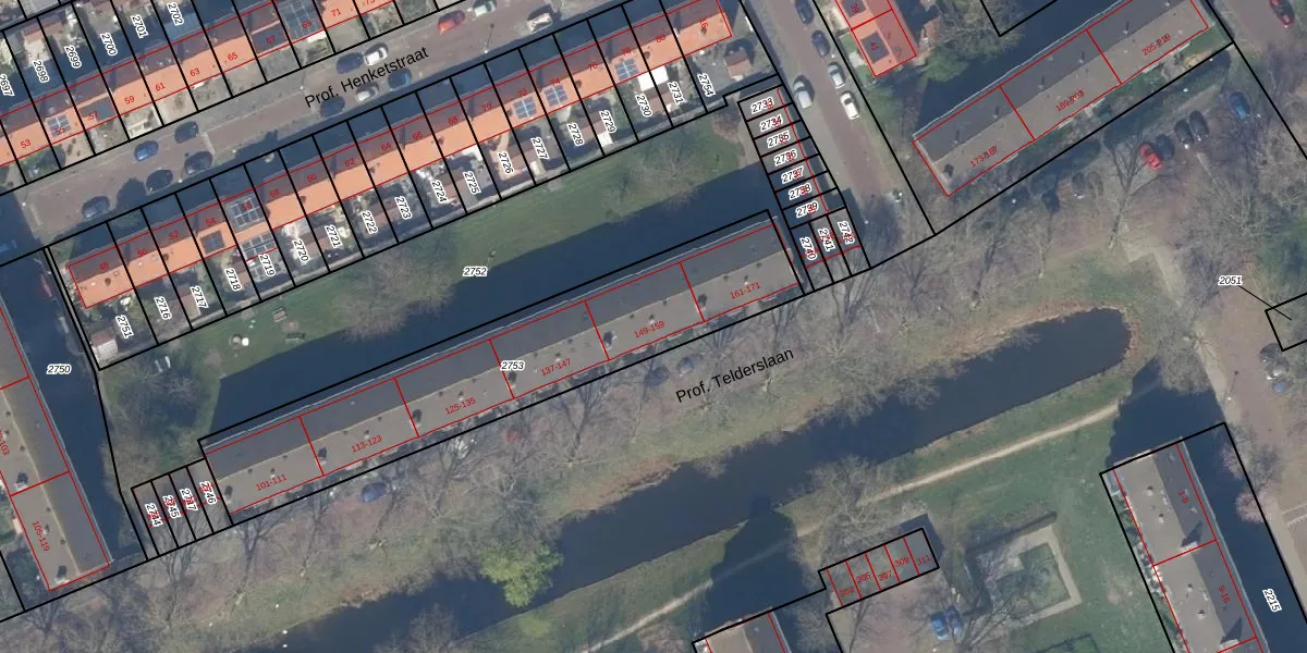 Prof. Telderslaan 157 is gelegen op kadastraal perceel DEL00K2753. Deze kadastrale aanduiding is uniek en wordt gebruikt door het Kadaster om eigendomsrechten en andere zakelijke rechten vast te leggen. Het perceel maakt onderdeel uit van de kadastrale gemeente Delft.