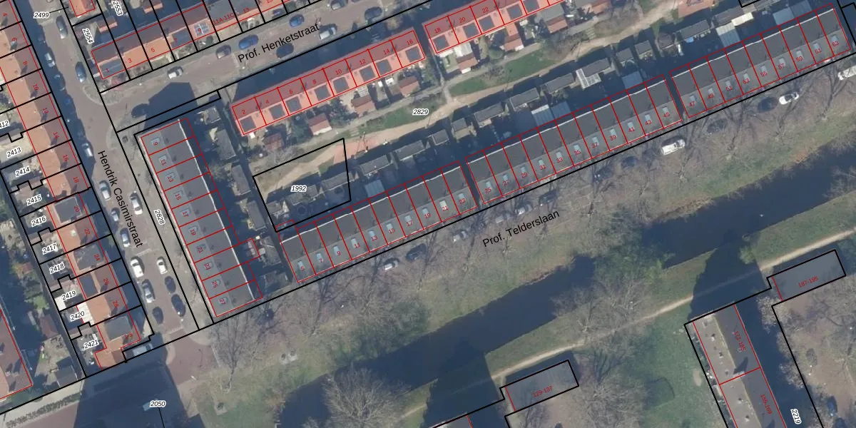 Prof. Telderslaan 19 is gelegen op kadastraal perceel DEL00K2829. Deze kadastrale aanduiding is uniek en wordt gebruikt door het Kadaster om eigendomsrechten en andere zakelijke rechten vast te leggen. Het perceel maakt onderdeel uit van de kadastrale gemeente Delft.