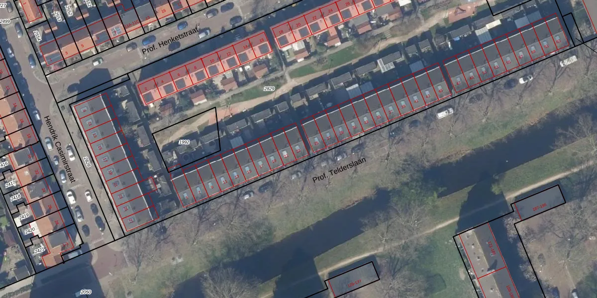 Prof. Telderslaan 23 is gelegen op kadastraal perceel DEL00K2829. Deze kadastrale aanduiding is uniek en wordt gebruikt door het Kadaster om eigendomsrechten en andere zakelijke rechten vast te leggen. Het perceel maakt onderdeel uit van de kadastrale gemeente Delft.
