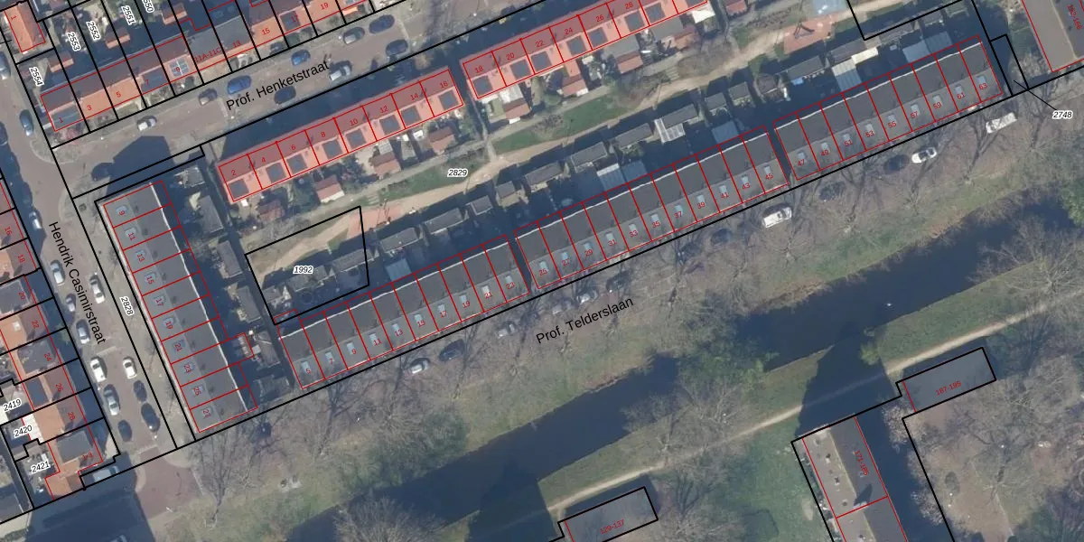 Prof. Telderslaan 25 is gelegen op kadastraal perceel DEL00K2829. Deze kadastrale aanduiding is uniek en wordt gebruikt door het Kadaster om eigendomsrechten en andere zakelijke rechten vast te leggen. Het perceel maakt onderdeel uit van de kadastrale gemeente Delft.