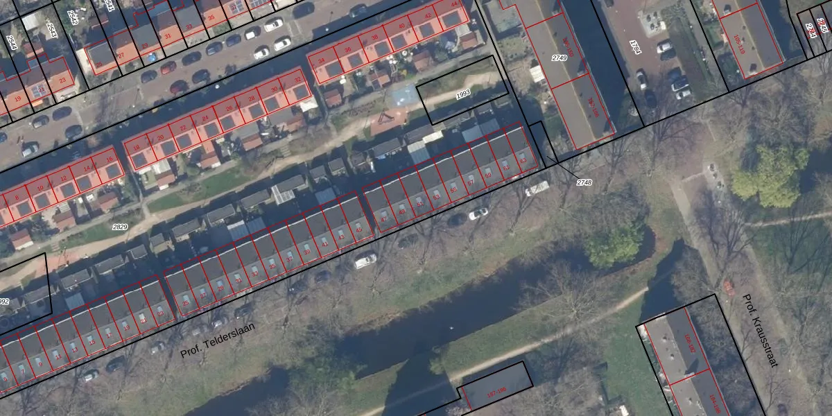Prof. Telderslaan 51 is gelegen op kadastraal perceel DEL00K2829. Deze kadastrale aanduiding is uniek en wordt gebruikt door het Kadaster om eigendomsrechten en andere zakelijke rechten vast te leggen. Het perceel maakt onderdeel uit van de kadastrale gemeente Delft.