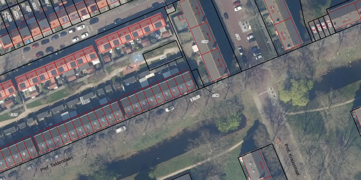 Prof. Telderslaan 61 is gelegen op kadastraal perceel DEL00K2829. Deze kadastrale aanduiding is uniek en wordt gebruikt door het Kadaster om eigendomsrechten en andere zakelijke rechten vast te leggen. Het perceel maakt onderdeel uit van de kadastrale gemeente Delft.