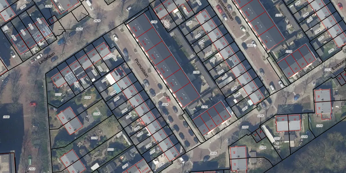 Het perceel waarop Prunuslaan 10 staat heeft een oppervlakte van 1851 m². Dit is een zeer groot perceel. De perceeloppervlakte wordt geregistreerd door het Kadaster. Gedetailleerde informatie over de maten van dit perceel kunt u vinden in het rapport Kadastrale kaart met maatvoering van Prunuslaan 10.
