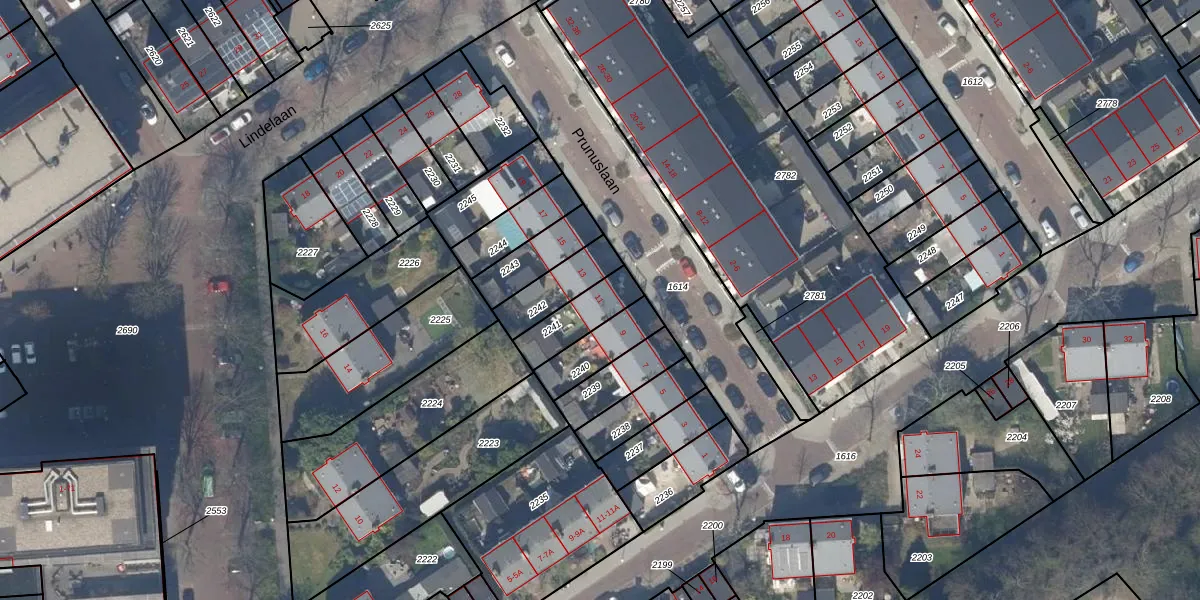 Prunuslaan 11 is gelegen op kadastraal perceel DEL00P2241. Deze kadastrale aanduiding is uniek en wordt gebruikt door het Kadaster om eigendomsrechten en andere zakelijke rechten vast te leggen. Het perceel maakt onderdeel uit van de kadastrale gemeente Delft.