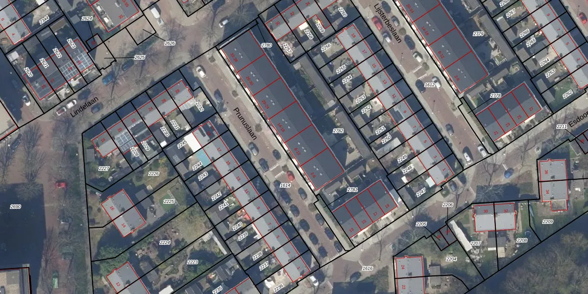Het perceel waarop Prunuslaan 12 staat heeft een oppervlakte van 1851 m². Dit is een zeer groot perceel. De perceeloppervlakte wordt geregistreerd door het Kadaster. Gedetailleerde informatie over de maten van dit perceel kunt u vinden in het rapport Kadastrale kaart met maatvoering van Prunuslaan 12.