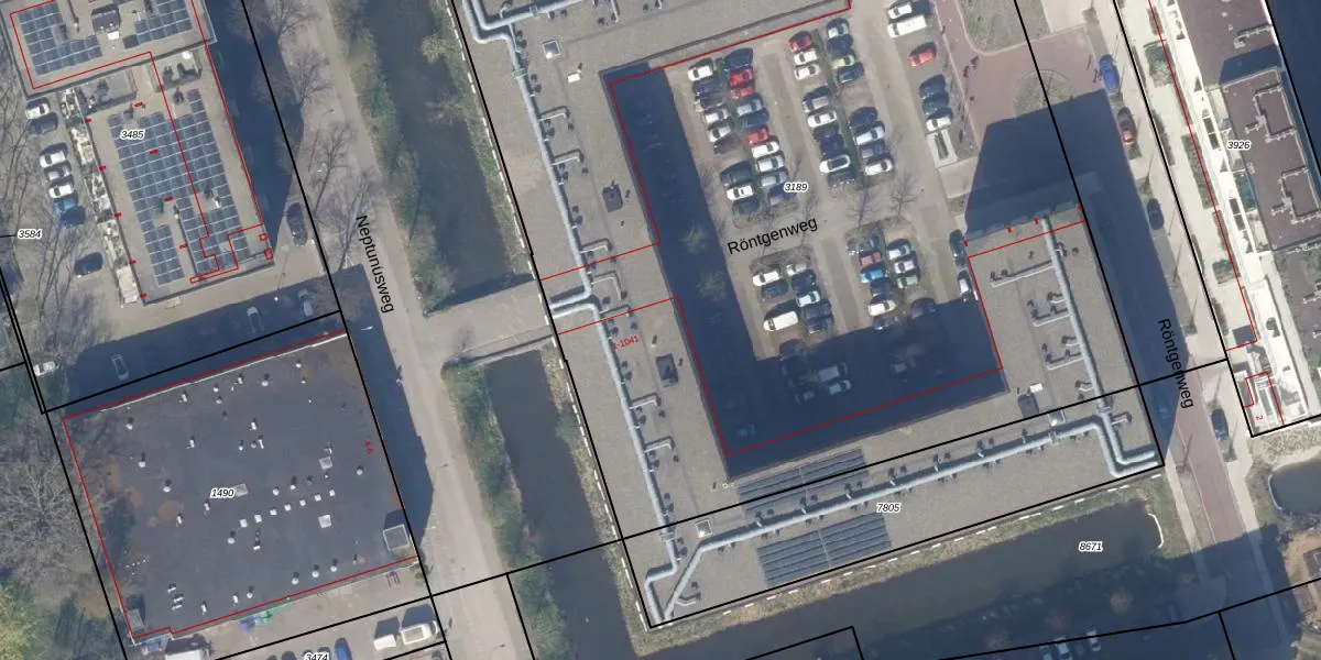 Het perceel waarop Röntgenweg 721 staat heeft een oppervlakte van 6910 m². Dit is een zeer groot perceel. De perceeloppervlakte wordt geregistreerd door het Kadaster. Gedetailleerde informatie over de maten van dit perceel kunt u vinden in het rapport Kadastrale kaart met maatvoering van Röntgenweg 721.