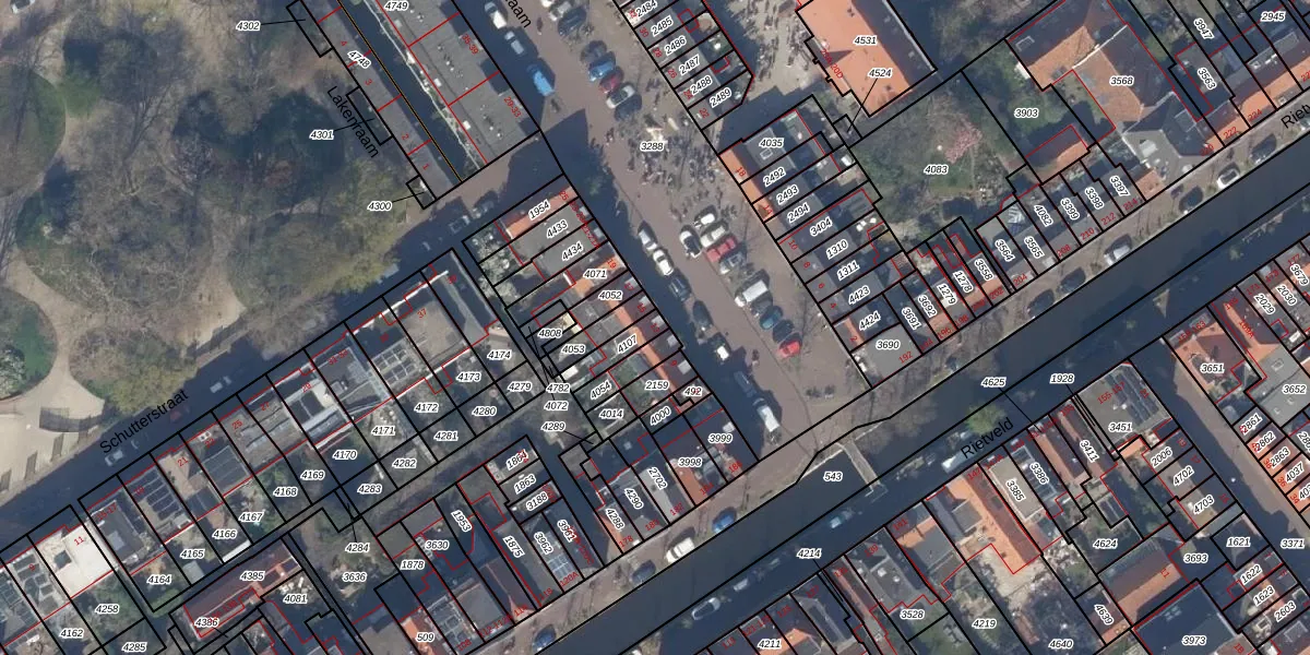 Het perceel waarop Raam 13 staat heeft een oppervlakte van 65 m². Dit is een klein perceel. De perceeloppervlakte wordt geregistreerd door het Kadaster. Gedetailleerde informatie over de maten van dit perceel kunt u vinden in het rapport Kadastrale kaart met maatvoering van Raam 13.
