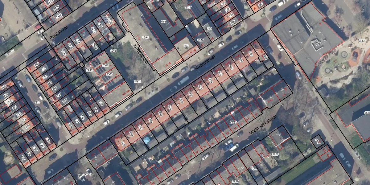 Raamstraat 111 is gelegen op kadastraal perceel DEL00O902. Deze kadastrale aanduiding is uniek en wordt gebruikt door het Kadaster om eigendomsrechten en andere zakelijke rechten vast te leggen. Het perceel maakt onderdeel uit van de kadastrale gemeente Delft.