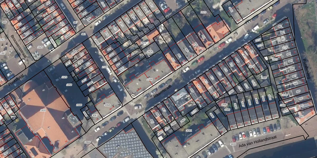 Het perceel waarop Raamstraat 42 staat heeft een oppervlakte van 557 m². Dit is een groot perceel. De perceeloppervlakte wordt geregistreerd door het Kadaster. Gedetailleerde informatie over de maten van dit perceel kunt u vinden in het rapport Kadastrale kaart met maatvoering van Raamstraat 42.