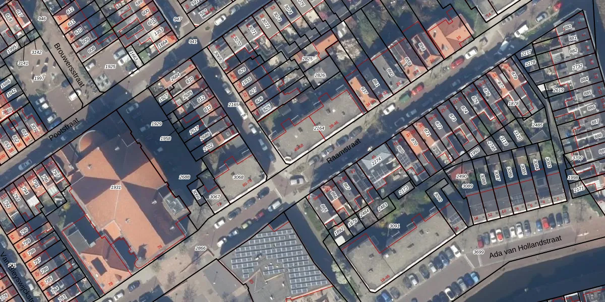 Het perceel waarop Raamstraat 54 staat heeft een oppervlakte van 557 m². Dit is een groot perceel. De perceeloppervlakte wordt geregistreerd door het Kadaster. Gedetailleerde informatie over de maten van dit perceel kunt u vinden in het rapport Kadastrale kaart met maatvoering van Raamstraat 54.