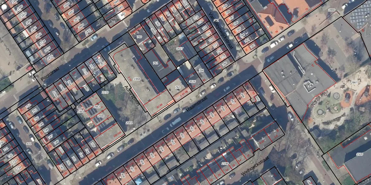Het perceel waarop Raamstraat 84 staat heeft een oppervlakte van 158 m². Dit is een middelgroot perceel. De perceeloppervlakte wordt geregistreerd door het Kadaster. Gedetailleerde informatie over de maten van dit perceel kunt u vinden in het rapport Kadastrale kaart met maatvoering van Raamstraat 84.