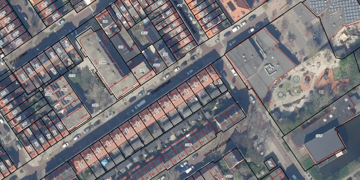 Raamstraat 87 is gelegen op kadastraal perceel DEL00O898. Deze kadastrale aanduiding is uniek en wordt gebruikt door het Kadaster om eigendomsrechten en andere zakelijke rechten vast te leggen. Het perceel maakt onderdeel uit van de kadastrale gemeente Delft.