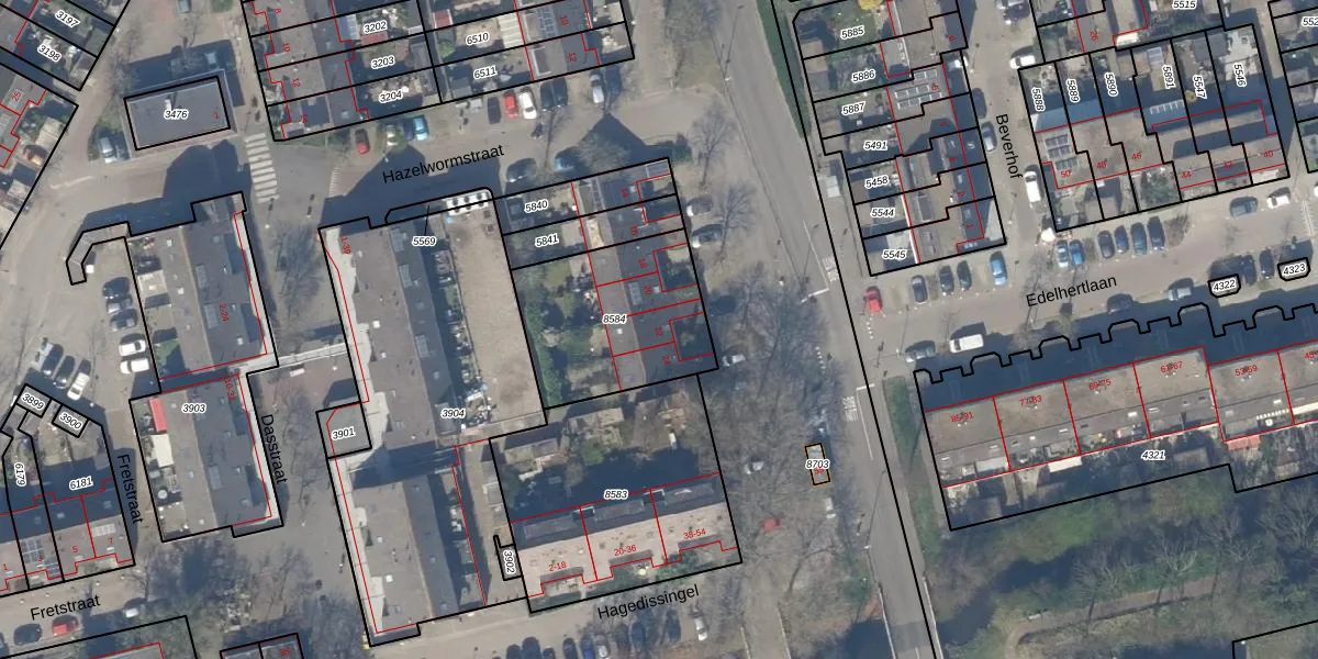 Het adres is gelegen op perceel 8584 in de sectie R en de kadastrale gemeente Delft. De kadastrale aanduiding is aldus DEL00-R-8584. De gemiddelde perceelgrootte in Delft is 924,69 m². Dit perceel is kleiner: de perceeloppervlakte bedraagt 594 m². Het grootste perceel in de kadastrale gemeente is 64,1 ha. Het kleinste perceel heeft een oppervlakte van 0 m². Er zijn 4 adressen aanwezig op het perceel. In de Basisregistratie Kadaster (BRK) werden de grenzen van het perceel geregistreerd op 31-07-2023.