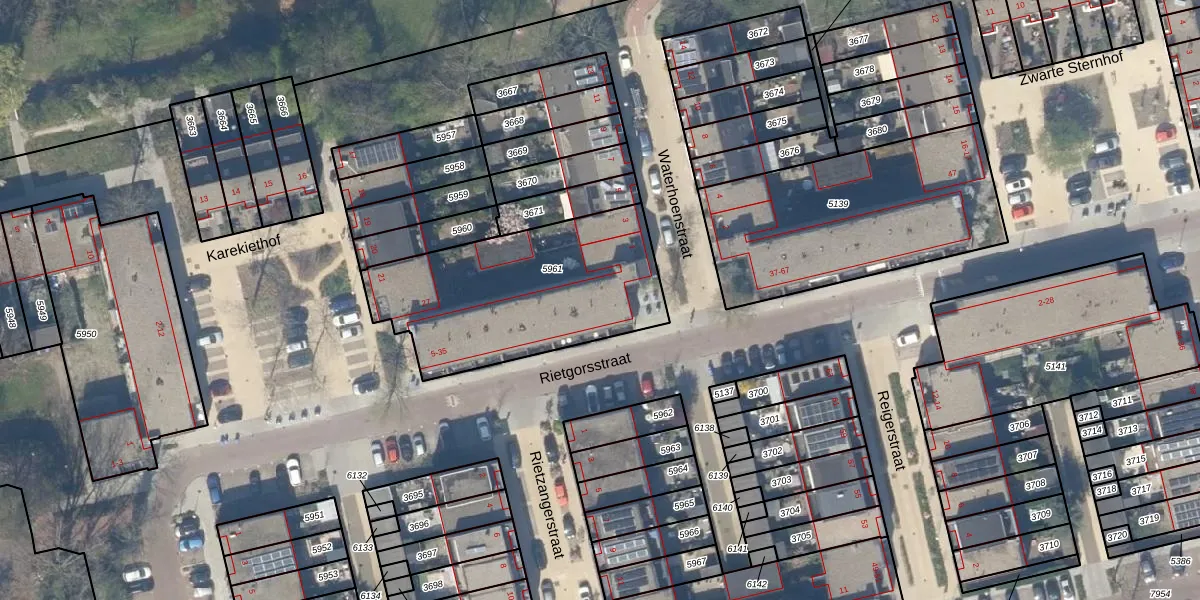 Het perceel waarop Rietgorsstraat 35 staat heeft een oppervlakte van 939 m². Dit is een groot perceel. De perceeloppervlakte wordt geregistreerd door het Kadaster. Gedetailleerde informatie over de maten van dit perceel kunt u vinden in het rapport Kadastrale kaart met maatvoering van Rietgorsstraat 35.