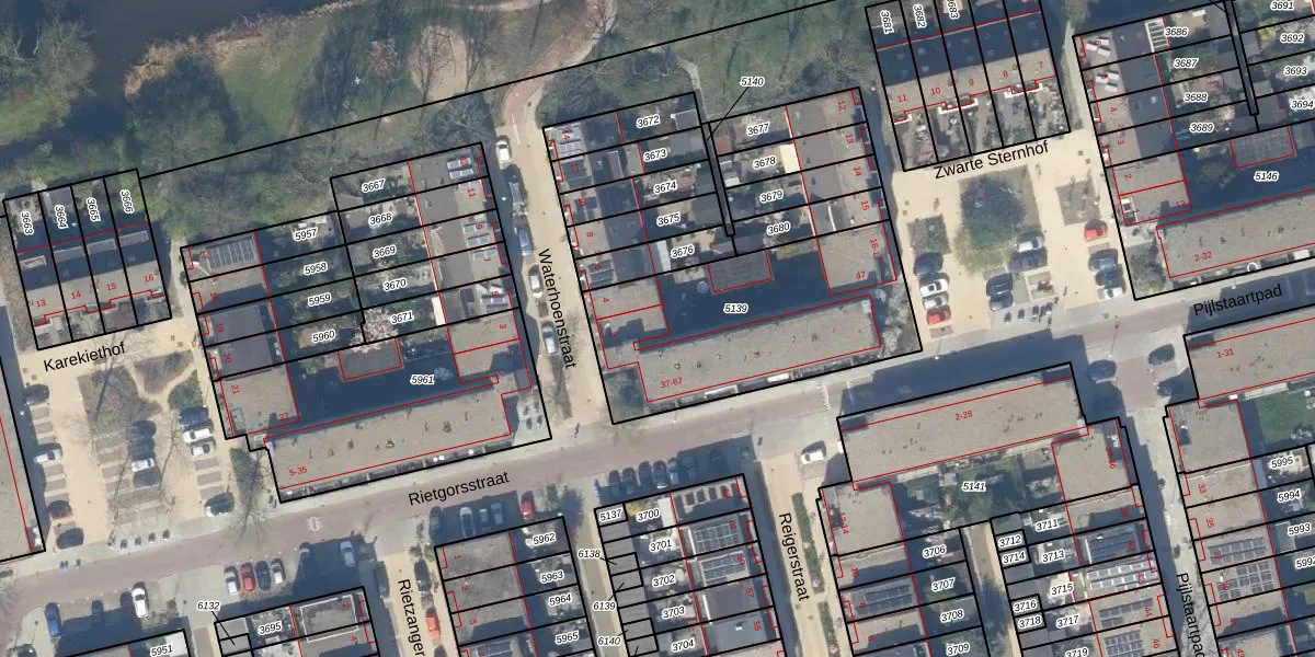 Het perceel waarop Rietgorsstraat 37 staat heeft een oppervlakte van 992 m². Dit is een groot perceel. De perceeloppervlakte wordt geregistreerd door het Kadaster. Gedetailleerde informatie over de maten van dit perceel kunt u vinden in het rapport Kadastrale kaart met maatvoering van Rietgorsstraat 37.