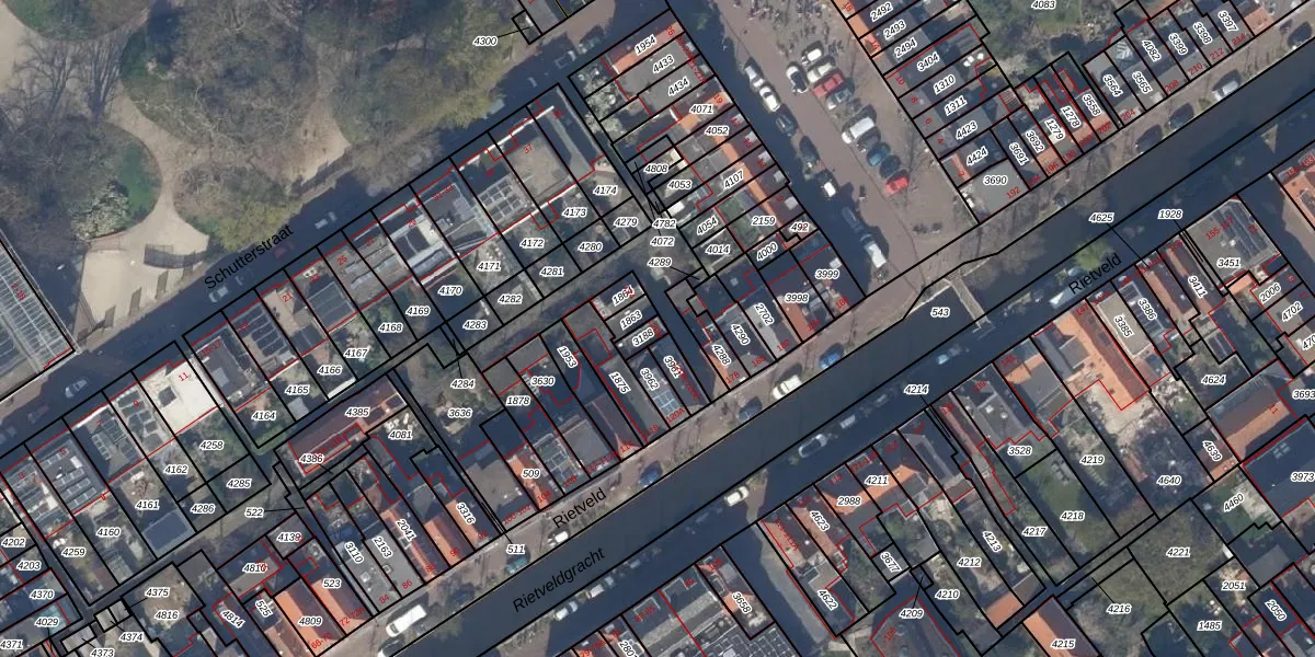 Het perceel waarop Rietveld 120-D staat heeft een oppervlakte van 25 m². Dit is een klein perceel. De perceeloppervlakte wordt geregistreerd door het Kadaster. Gedetailleerde informatie over de maten van dit perceel kunt u vinden in het rapport Kadastrale kaart met maatvoering van Rietveld 120-D.