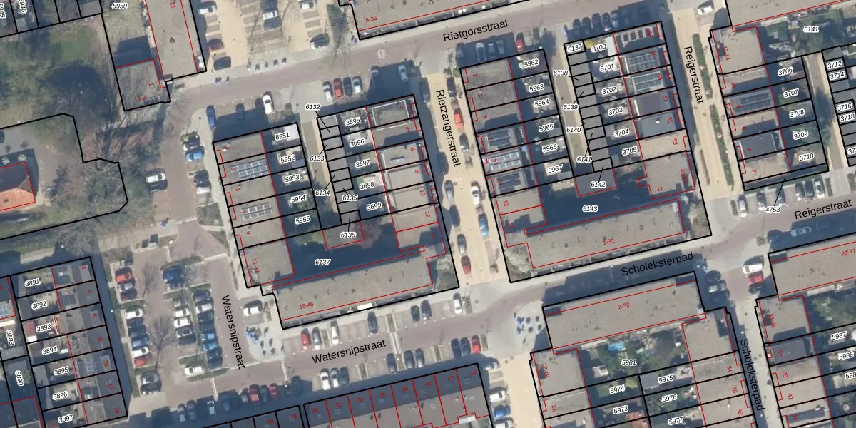 Rietzangerstraat 12 is gelegen op kadastraal perceel DEL00R6137. Deze kadastrale aanduiding is uniek en wordt gebruikt door het Kadaster om eigendomsrechten en andere zakelijke rechten vast te leggen. Het perceel maakt onderdeel uit van de kadastrale gemeente Delft.
