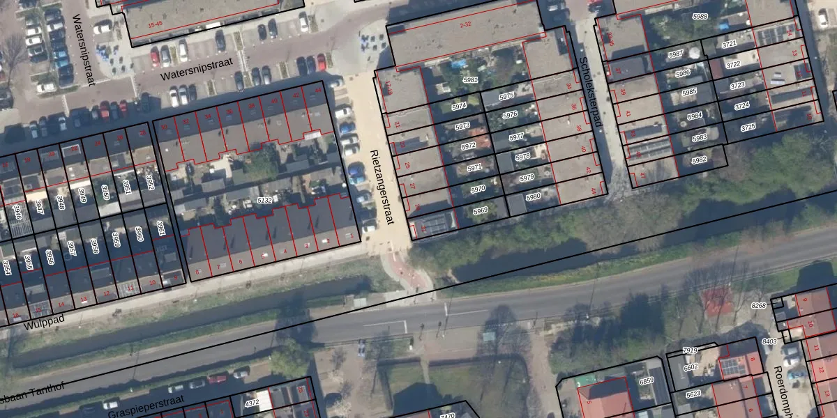 Rietzangerstraat 29 is gelegen op kadastraal perceel DEL00R5970. Deze kadastrale aanduiding is uniek en wordt gebruikt door het Kadaster om eigendomsrechten en andere zakelijke rechten vast te leggen. Het perceel maakt onderdeel uit van de kadastrale gemeente Delft.