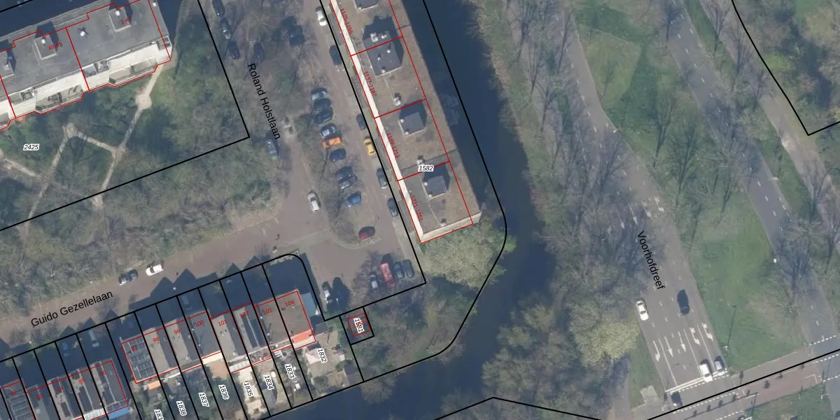 Roland Holstlaan 1221 is gelegen op kadastraal perceel DEL00R1582. Deze kadastrale aanduiding is uniek en wordt gebruikt door het Kadaster om eigendomsrechten en andere zakelijke rechten vast te leggen. Het perceel maakt onderdeel uit van de kadastrale gemeente Delft.