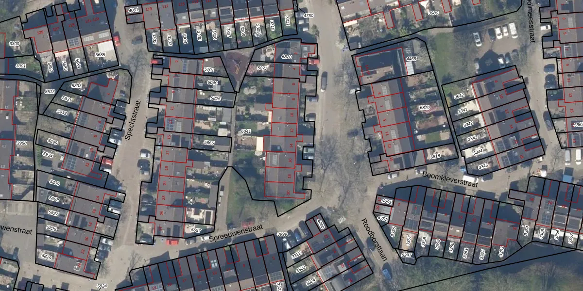 Het perceel waarop Roodborstlaan 14 staat heeft een oppervlakte van 2056 m². Dit is een zeer groot perceel. De perceeloppervlakte wordt geregistreerd door het Kadaster. Gedetailleerde informatie over de maten van dit perceel kunt u vinden in het rapport Kadastrale kaart met maatvoering van Roodborstlaan 14.