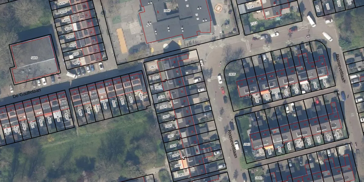 Gebruik de zoekbalk of klik op een perceel voor informatie over de adressen binnen dit perceel.