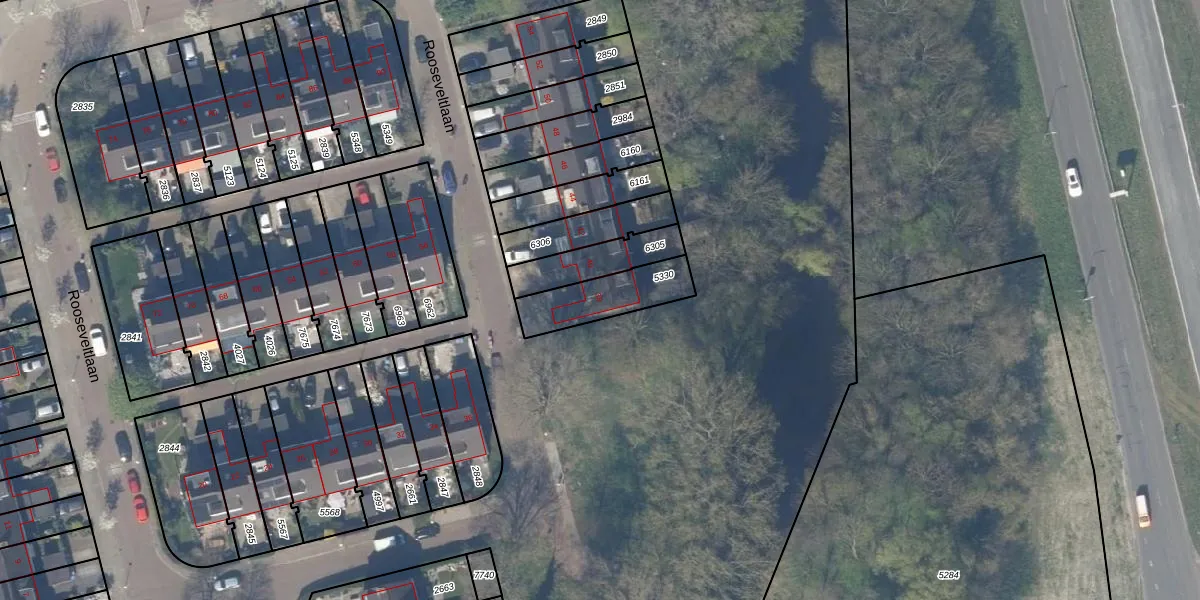 Het perceel waarop Rooseveltlaan 38 staat heeft een oppervlakte van 203 m². Dit is een middelgroot perceel. De perceeloppervlakte wordt geregistreerd door het Kadaster. Gedetailleerde informatie over de maten van dit perceel kunt u vinden in het rapport Kadastrale kaart met maatvoering van Rooseveltlaan 38.