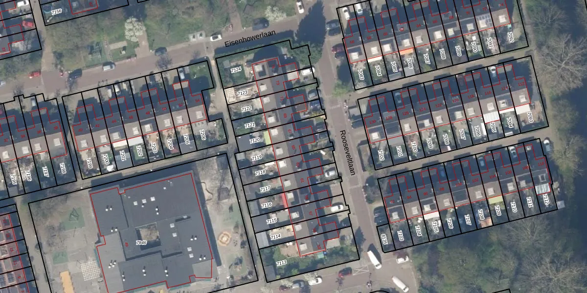 Rooseveltlaan 65 is gelegen op kadastraal perceel DEL00R7119. Deze kadastrale aanduiding is uniek en wordt gebruikt door het Kadaster om eigendomsrechten en andere zakelijke rechten vast te leggen. Het perceel maakt onderdeel uit van de kadastrale gemeente Delft.