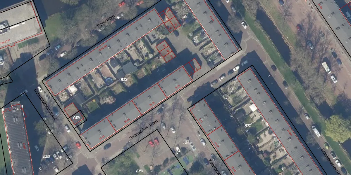 Saaiwerkerstraat 8 is gelegen op kadastraal perceel DEL00O1500. Deze kadastrale aanduiding is uniek en wordt gebruikt door het Kadaster om eigendomsrechten en andere zakelijke rechten vast te leggen. Het perceel maakt onderdeel uit van de kadastrale gemeente Delft.