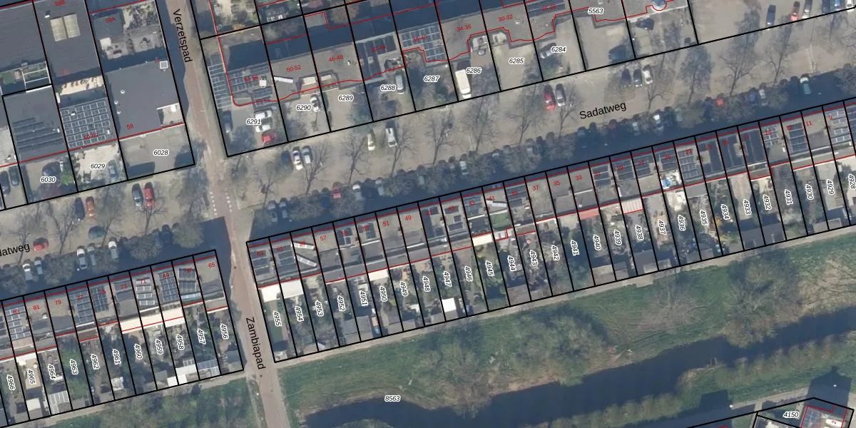 Gebruik de zoekbalk of klik op een perceel voor informatie over de adressen binnen dit perceel.