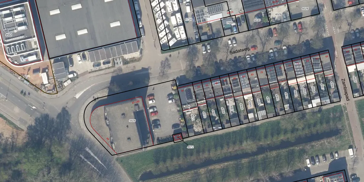 Sadatweg 95 is gelegen op kadastraal perceel DEL00R4971. Deze kadastrale aanduiding is uniek en wordt gebruikt door het Kadaster om eigendomsrechten en andere zakelijke rechten vast te leggen. Het perceel maakt onderdeel uit van de kadastrale gemeente Delft.