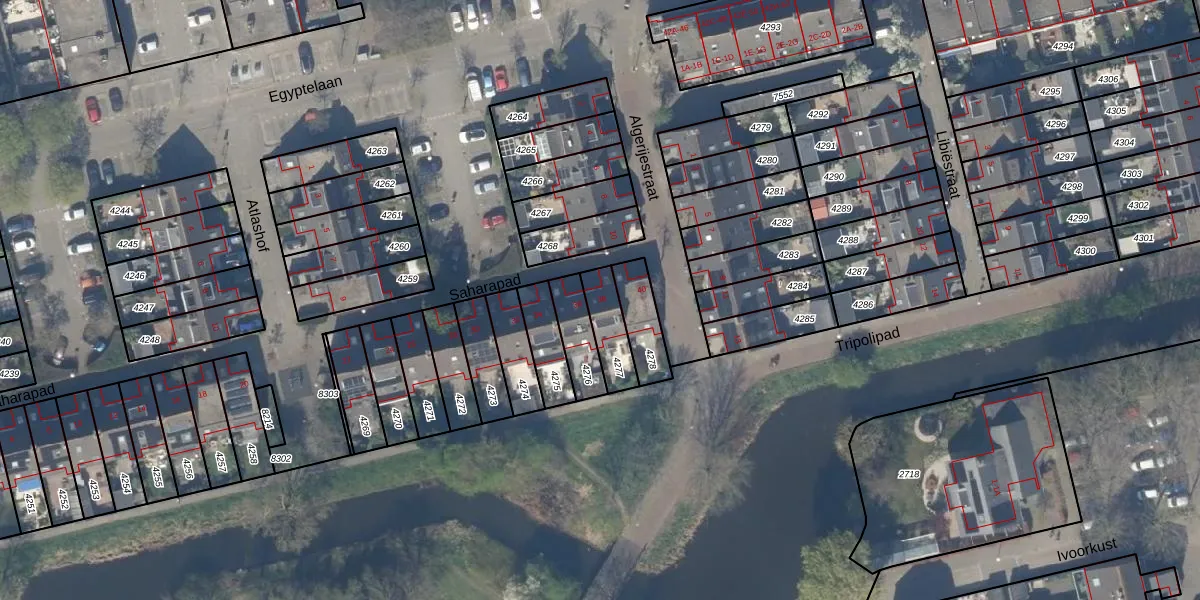 Gebruik de zoekbalk of klik op een perceel voor informatie over de adressen binnen dit perceel.