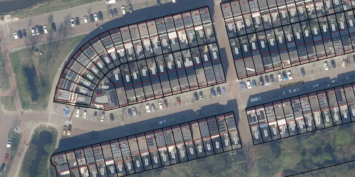Sandinoweg 17 is gelegen op kadastraal perceel DEL00R5197. Deze kadastrale aanduiding is uniek en wordt gebruikt door het Kadaster om eigendomsrechten en andere zakelijke rechten vast te leggen. Het perceel maakt onderdeel uit van de kadastrale gemeente Delft.