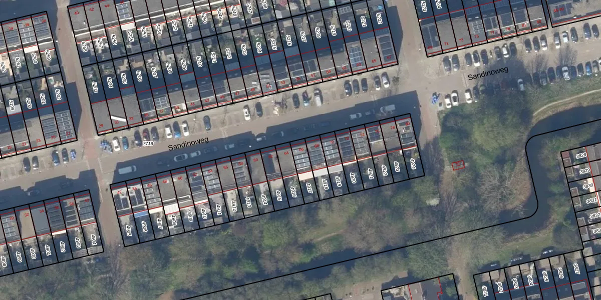 Het perceel waarop Sandinoweg 66 staat heeft een oppervlakte van 109 m². Dit is een middelgroot perceel. De perceeloppervlakte wordt geregistreerd door het Kadaster. Gedetailleerde informatie over de maten van dit perceel kunt u vinden in het rapport Kadastrale kaart met maatvoering van Sandinoweg 66.