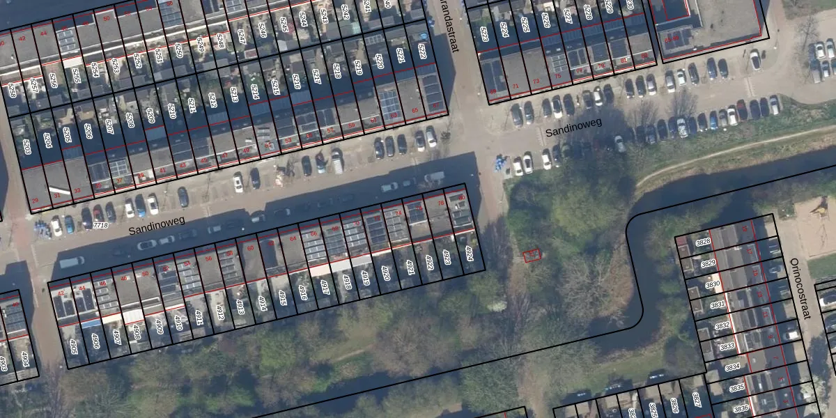 Het perceel waarop Sandinoweg 76 staat heeft een oppervlakte van 109 m². Dit is een middelgroot perceel. De perceeloppervlakte wordt geregistreerd door het Kadaster. Gedetailleerde informatie over de maten van dit perceel kunt u vinden in het rapport Kadastrale kaart met maatvoering van Sandinoweg 76.